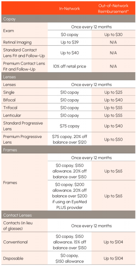 We partner with EyeMed to offer you and your family members vision insurance. Visit eyemed.com to find in-network providers and access to a variety of online tools and programs.